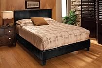 The Harbortown platform bed features clean lines and a sleek design. Entirely upholstered in black vinyl, this bed is versatile enough to complement a variety of decors. No need for a box spring, this bed has flex-deck support so only a mattress is needed. High end style at the right price, the Harbortown platform bed is a fantastic choice.
