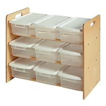 Little Colorado Nine Bin Toy OrganizerWith this Little Colorado Toy Organizer, keeping clutter under control has never been so neat and easy. This toy organizer comes with nine plastic bins and lids for storing all kinds of stuff. These six-quart capacity bins are excellent for organizing Legos©, doll clothes, art supplies, rocks, seashell collections, etc. This wooden toy organizer is made from Baltic birch wood plywood and birch dowels for added strength and stability. This wooden toy organize